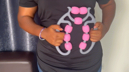 - Pour les bras et les jambes : Tenez fermement la poignée ergonomique et passez les rouleaux le long de vos muscles en effectuant des mouvements lents et réguliers. Cela détend les muscles après une séance de sport ou une longue journée de travail.