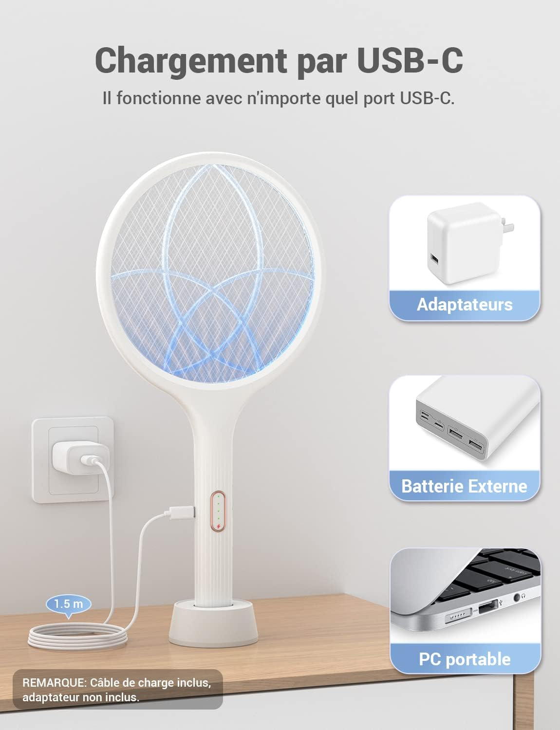 Oui, une base stable est incluse pour un rangement pratique et une recharge simple via USB-C.