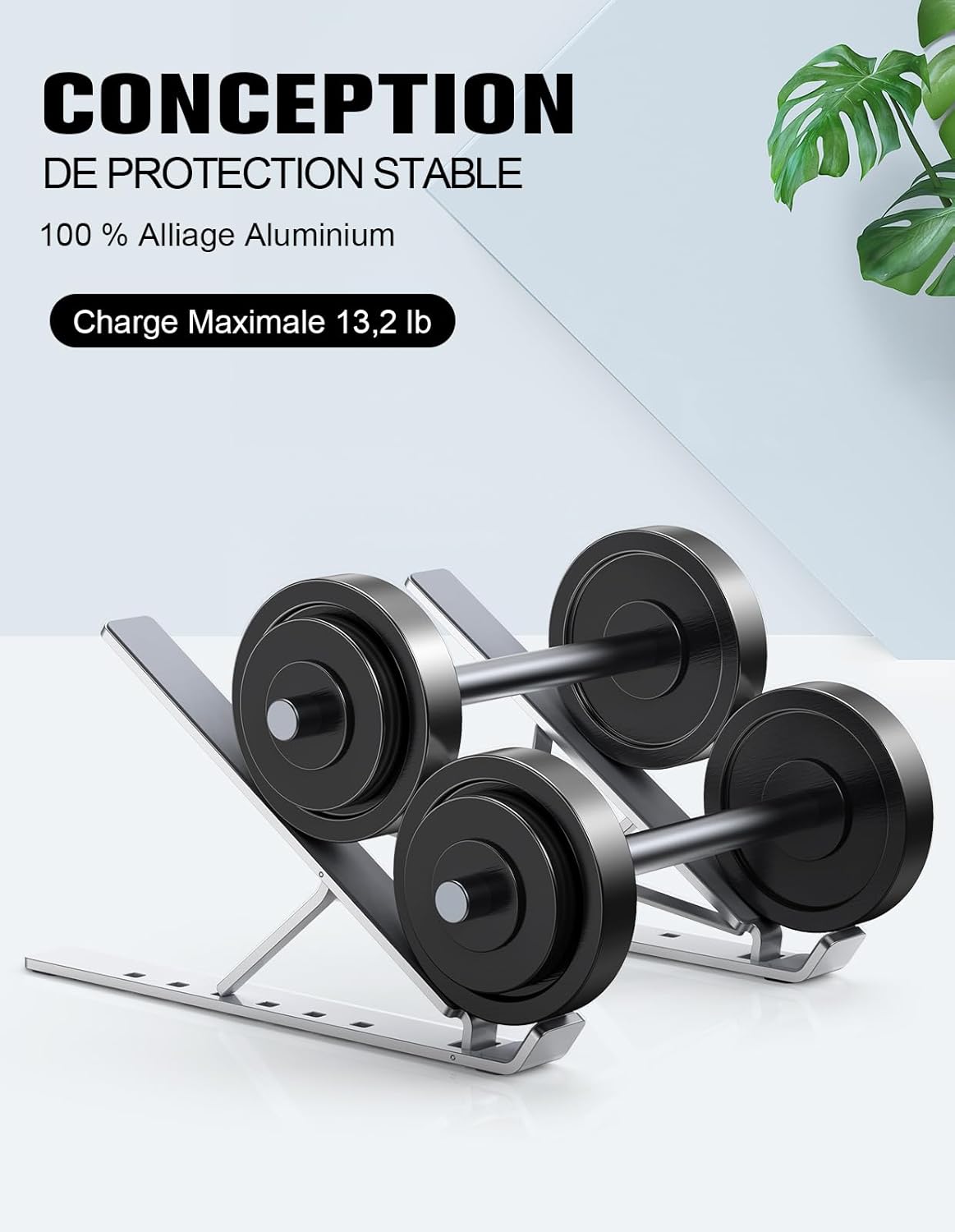 Support PC Portable Pliable à Surélever 6 Angles Réglable, Antidérapant en Aluminium Ventilé